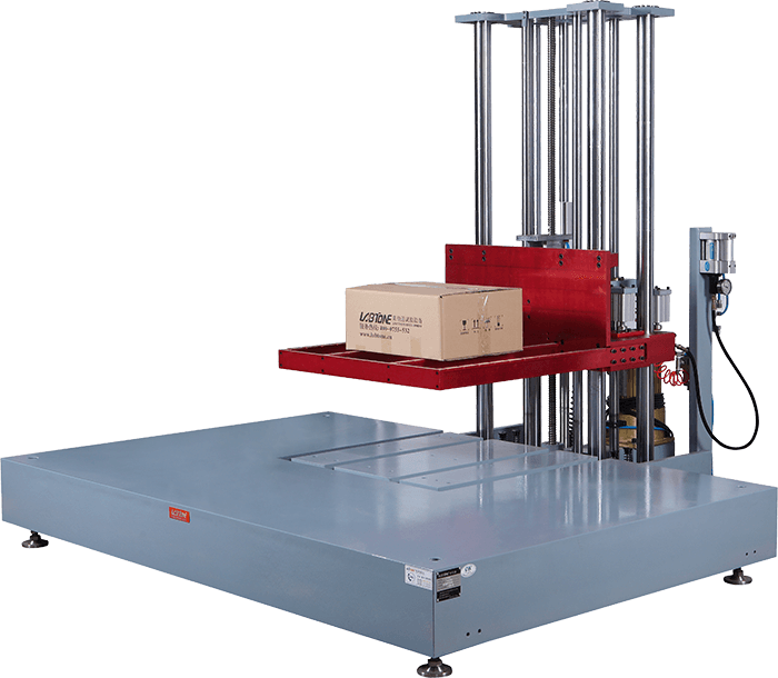 對(duì)于大型包裝貨物,一般質(zhì)量較大,在運(yùn)輸、搬運(yùn)時(shí)垂直跌落高度較低。要求跌落試驗(yàn)高度也相對(duì)較低,零高度試驗(yàn)機(jī)主要用于較大型包裝件跌落測(cè)試。零高度跌落試驗(yàn)機(jī)由一個(gè)可以快速向下移動(dòng)的E型叉架作為托架,被測(cè)物件按試驗(yàn)要求(面、棱、角試驗(yàn))放置平衡。試驗(yàn)時(shí),托架先于試件高速向下運(yùn)動(dòng),加速度>3G保證托架與試件清楚分離,實(shí)現(xiàn)自由跌落。標(biāo)準(zhǔn)跌落高度范圍2.54-120cm. | 零高度跌落試驗(yàn)機(jī) | |||