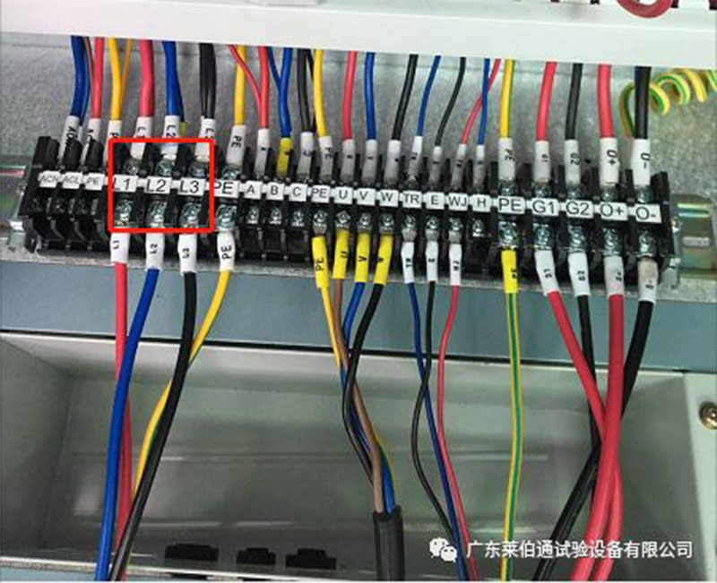相序方法:調(diào)節(jié)設(shè)備接線端處“L1""L2""L3"的接線順序,如圖:
